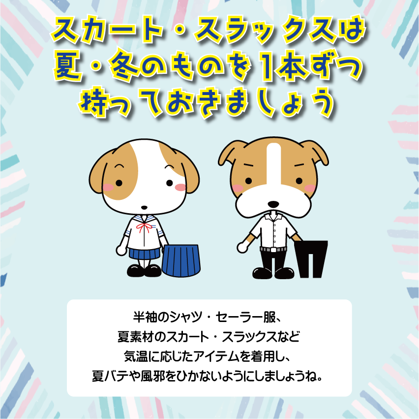 突然のことも考えて、ボトムスは夏・冬1本ずつは準備しておきましょう